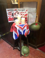 Thanks to the efforts of our Interim Vicar, Rev’d Paul Payton and the amazing team of ‘meeters and greeters’, our visit, once again was warm and inviting. The interior had been lovingly decorated with signs and symbols of remembrance, including the poppy wreaths constructed out of old egg-boxes by the Beavers (yes, I did say ‘egg boxes and not X-Boxes!) As the sunlight streamed through the windows, Fr.Paul led us in a wonderful service, then out into the churchyard to stand before the cenotaph where all the names inscribed were read aloud, followed by our own two minutes silence. (Did you know that the churchyard contains the war graves of five soldiers of World War I, and two of World War II?...information supplied by one of the Beavers, our very own “Beaverpedia ” )