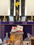 Next, our Mayor, Cllr Anne Kelly, after a suspense-filled countdown switched on our Christmas Tree lights and then, during a group reading of Wendy Cope’s poem The Christmas Life , received special Christmas gifts and symbols brought forward by some very young members of our congregation dressed in nativity-play costumes.