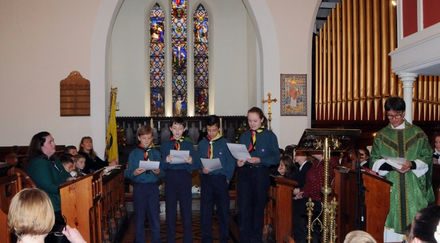The unfolding of the Christmas story in word, song, action and prayer was shared by a large number of children and adults representing church, school, Uniformed Organisations and community. St James’ School Choir enthusiastically sang a mixture of lively Christmas songs and the combined Cubs and Beavers serenaded us with a lovely rendition of Away in a Manger.